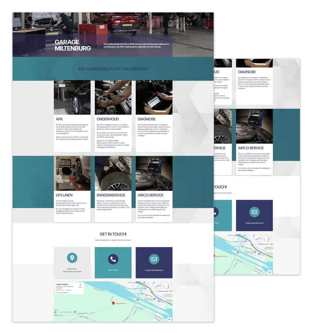 Garage Miltenburg staat bekend om kwaliteit en betrouwbaarheid in onderhoud en reparatie van auto’s. De nieuwe website moest deze kernwaarden duidelijk uitdragen en tegelijk praktisch zijn voor bezoekers. Klanten moeten snel kunnen zien welke diensten de garage aanbiedt en hoe ze een afspraak kunnen maken. Het resultaat is een overzichtelijke WordPress-website die zowel informatief als gebruiksvriendelijk is.